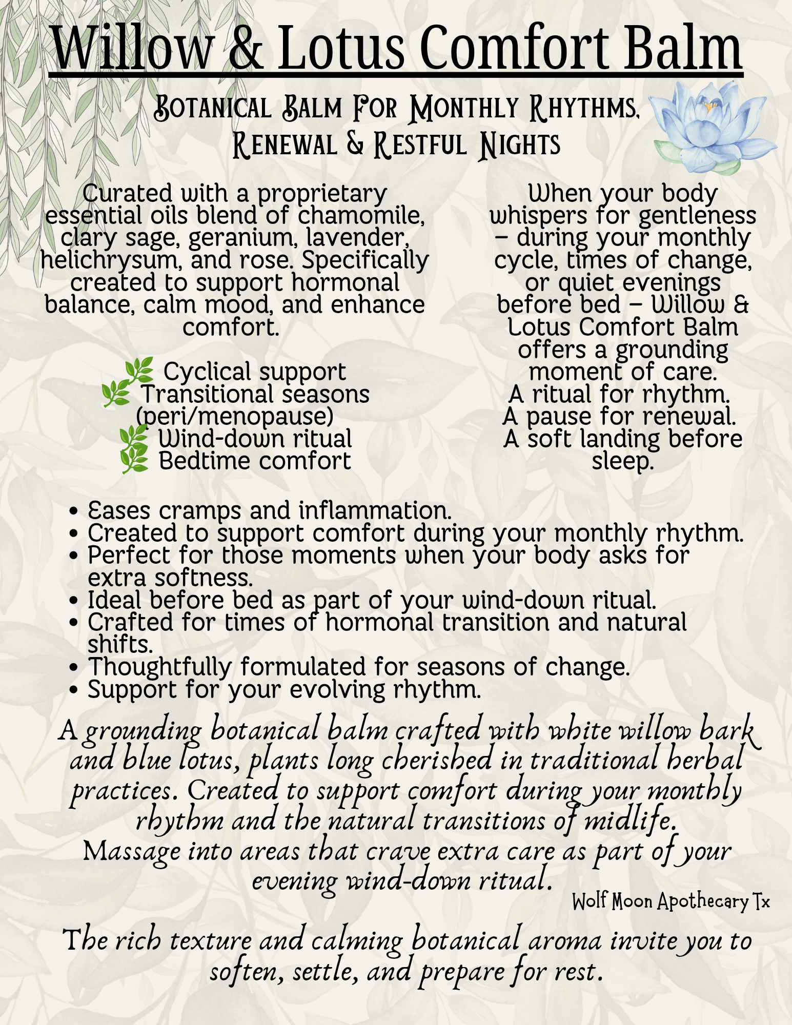 🌿 Willow & Lotus Comfort Balm