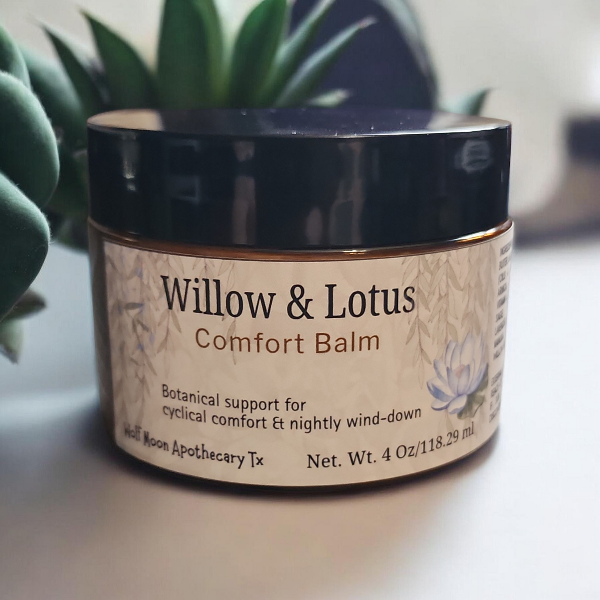 Body Balm | Willow & Lotus | Natural Comfort Balm | Hormone & Pain Management | 4 Oz Jar